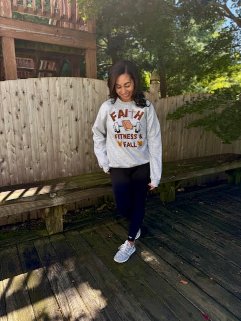 Stay cozy and stylish this fall with the "Faith Fitness & Fall" sweatshirt. Perfect for adults looking for a comfortable and warm option during the colder months. This classic fit crewneck sweatshirt features a ribbed knit collar, double-needle stitching for durability, and is made with a medium-heavy fabric blend of 50% cotton and 50% polyester. Ideal for anyone who loves fall vibes and wants to stay comfy while embracing the season.