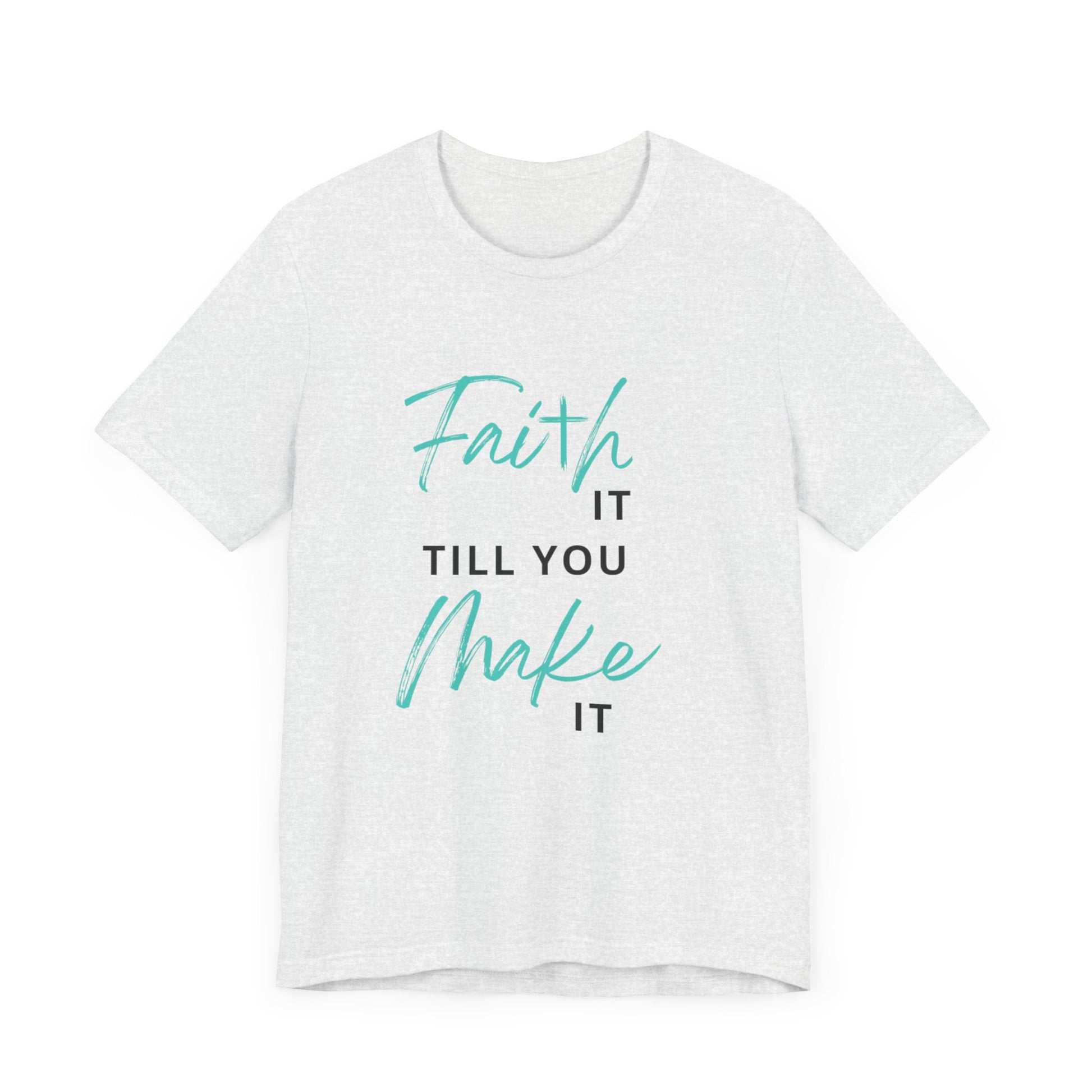 Power up your faith and fitness journey with the "Faith it till you make it" design! This bold graphic tee combines the strength of lifting with the power of the Word. Whether you're pushing through a tough workout or reflecting on scripture, this design is a reminder that true strength comes from both the barbell and the Bible.