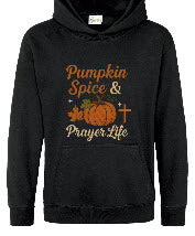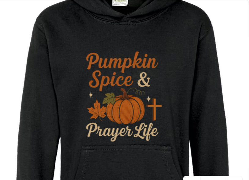 Stay cozy and stylish in this Pumpkin Spice & Prayer Life Hoodie. Perfect for those who love fall vibes and enjoy adding a touch of spirituality to their wardrobe. Ideal for adults looking for a comfy and durable sweatshirt for the colder months, especially relevant for the fall season and Thanksgiving celebrations.