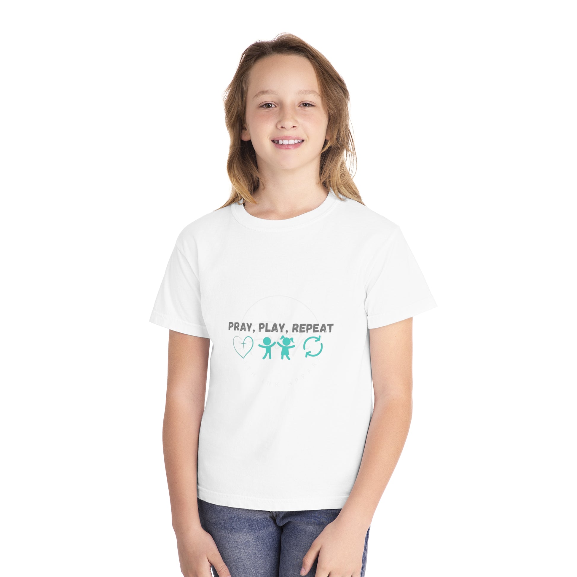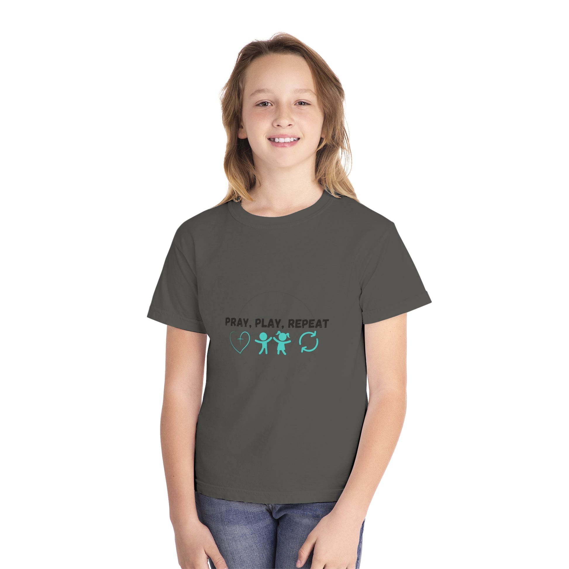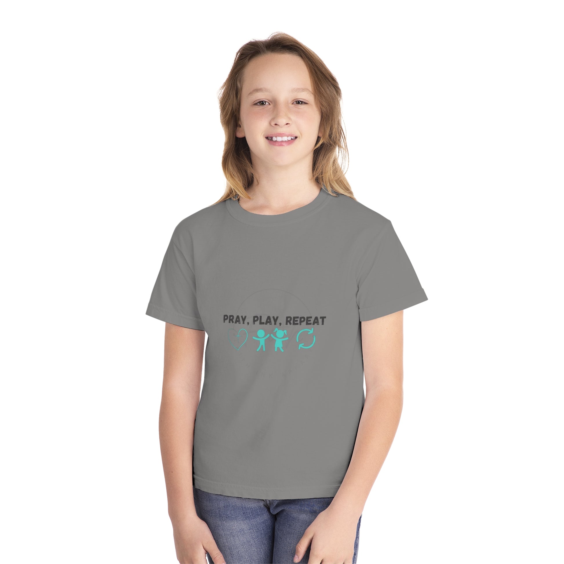 Youth Midweight Tee - "Pray, Play, Repeat" - Inspirational Kid's T-Shirt